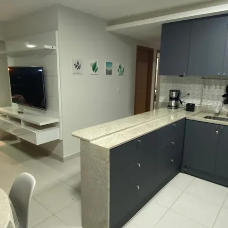 Apartamento Em Resort A Beira Mar - Cupe Beach Living offers a balcony, a kitchen, and a living room, as well as comforts like an air conditioner. At the apartment, guests will enjoy the convenience of towels in the bathroom. Furthermore, a shower is available.